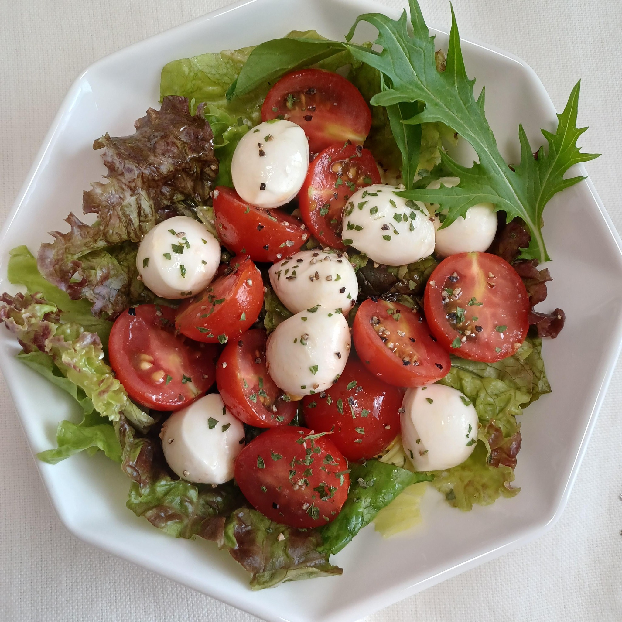 ドレッシング:オリーブオイル、レモン汁、塩、ブラックペッパー