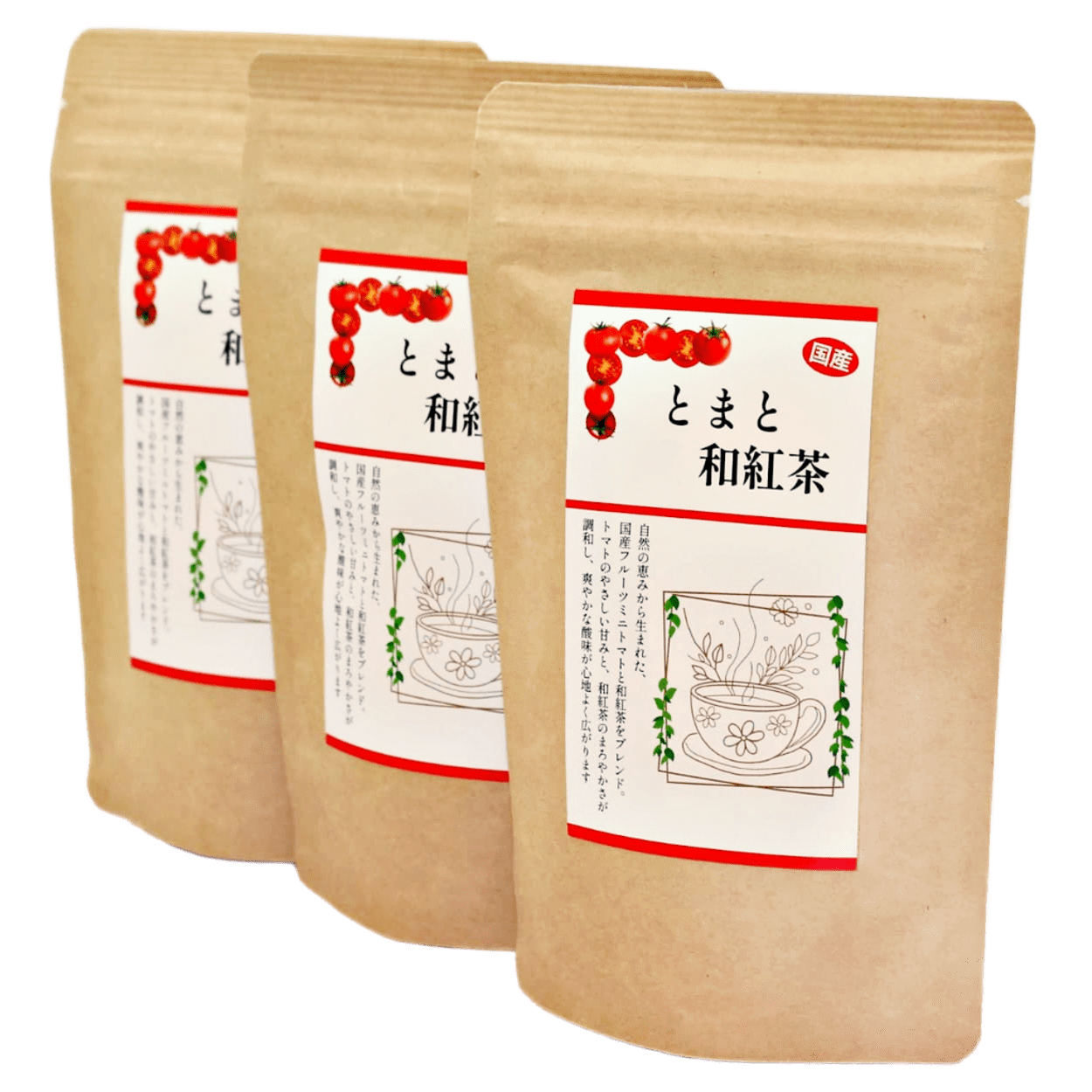 また、トマトには強い抗酸化作用のあるリコピン等が、和紅茶にはリラックス効果を高めるテアニン等が含まれています。